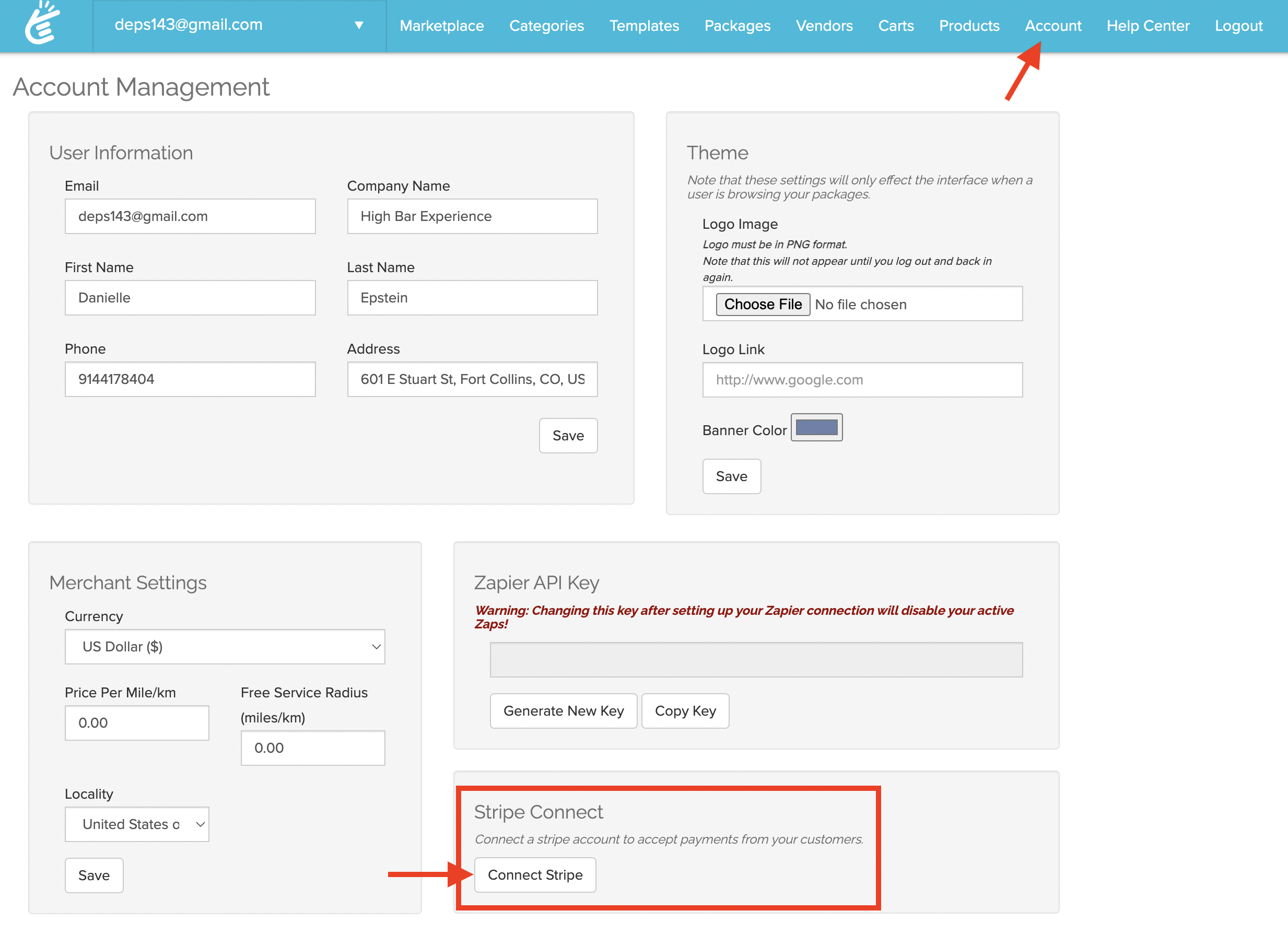 To get started, go to your Account and integrate E-Cinch and Stripe.