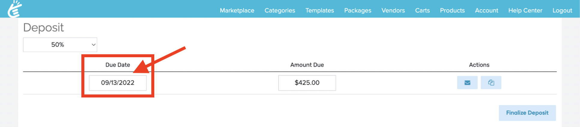 Once you click Finalize Deposit, your deposit dates or amounts cannot be changed. The proposal can still be changed and any prices differences will reflect in the remaining payment installments.